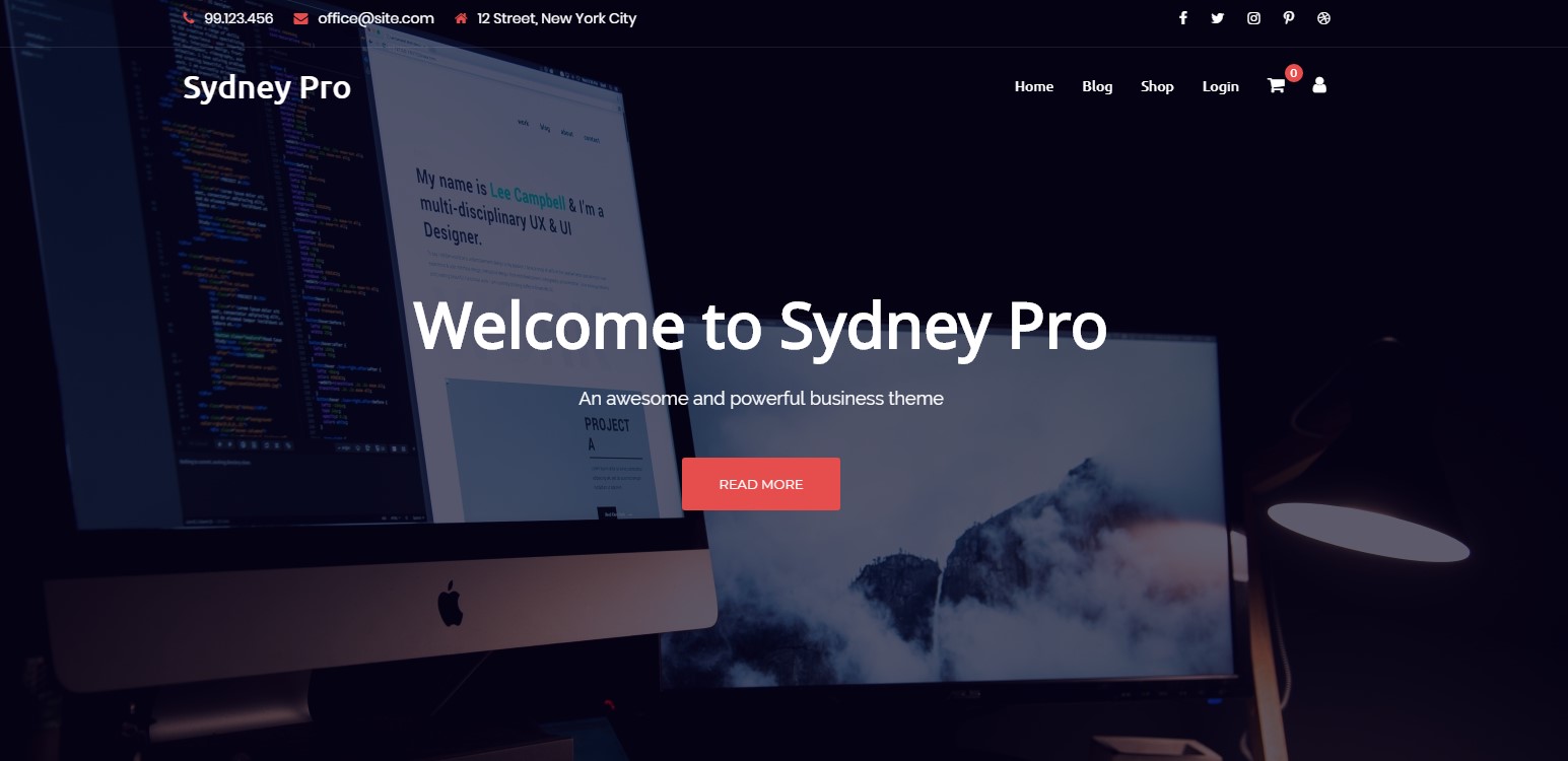 Daca vrei o tema stilizata, Sydney Pro este ceea ce trebuie sa folosesti. Vine cu blocuri de continut pentru prima pagina in care poti adauga imagini, elemente, continut si multe alte lucruri. Poti chiar sa adaugi si un slide reprezentativ in antetul site-ului.