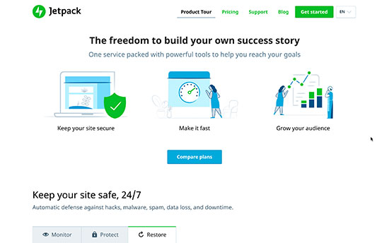 Jetpack reprezinta o suita de pluginuri WordPress create chiar de catre cei care mentin WordPress in picioare. Inainte, functia de migrare, se numea VaultPress si se vindea separat. Acum se numeste JetPack Backups si este inclusa in plugin. Poti usor sa restaurezi backup-uri WordPress si sa migrezi site-ul pe alte servere. Pluginul este gratuit, dar anumite caracteristici trebuie platite.
