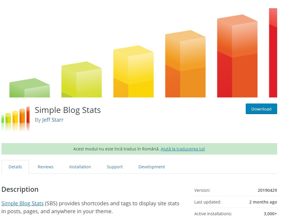 Unul dintre pluginurile potrivite pentru aceasta functie ar fi Simple Blog Stats, care se poate descarca de pe https://wordpress.org/plugins/simple-blog-stats/ . Dupa instalare si activare, trebuie sa mergi la Setari si apoi la Simple Blog Stats pentru a configura corespunzator pluginul.
